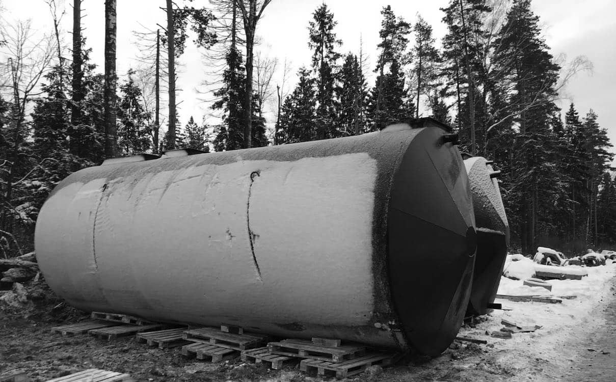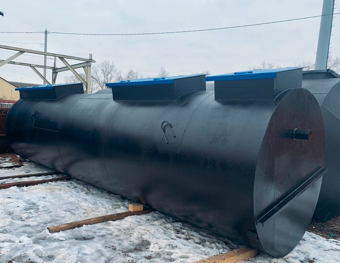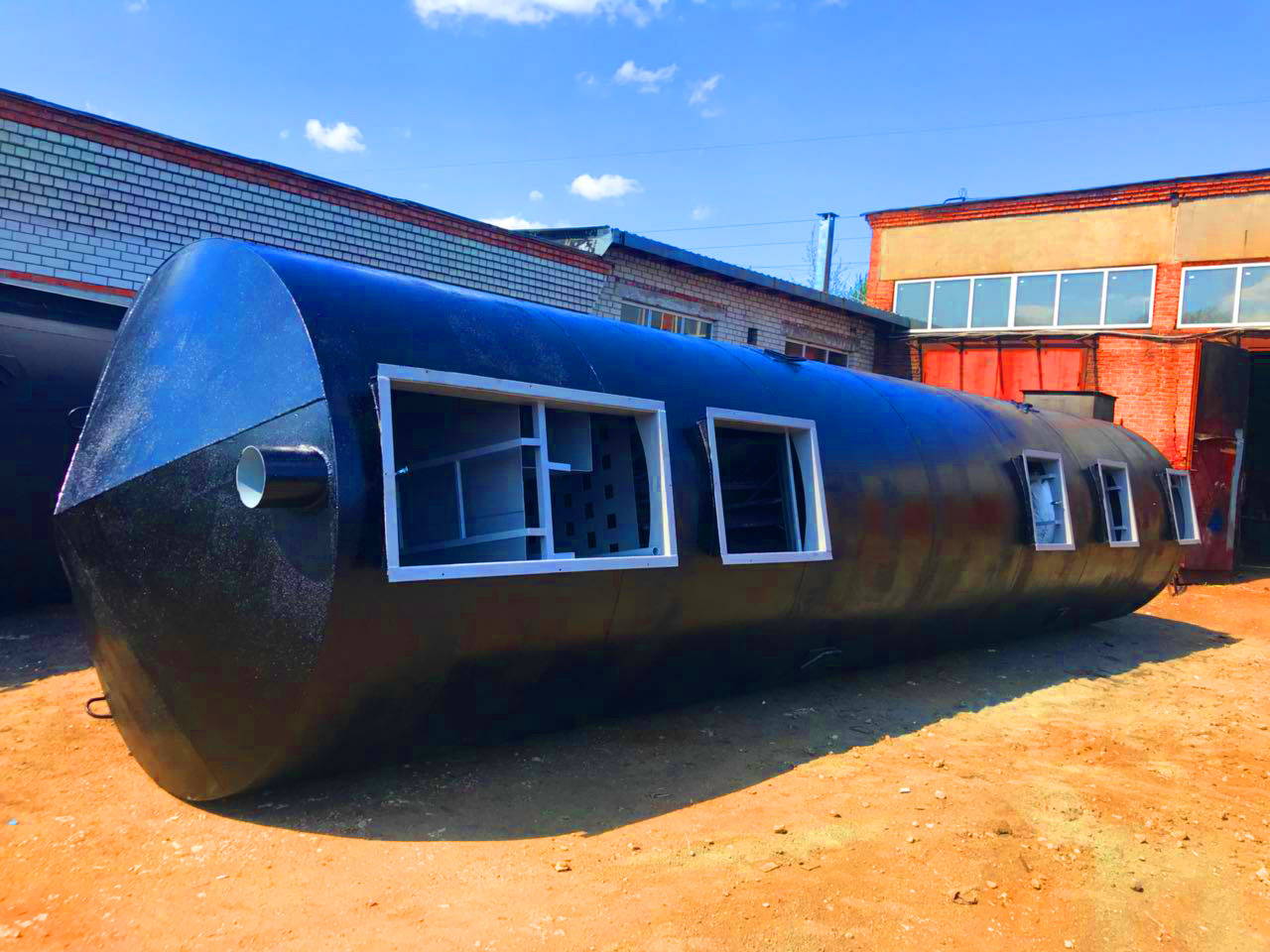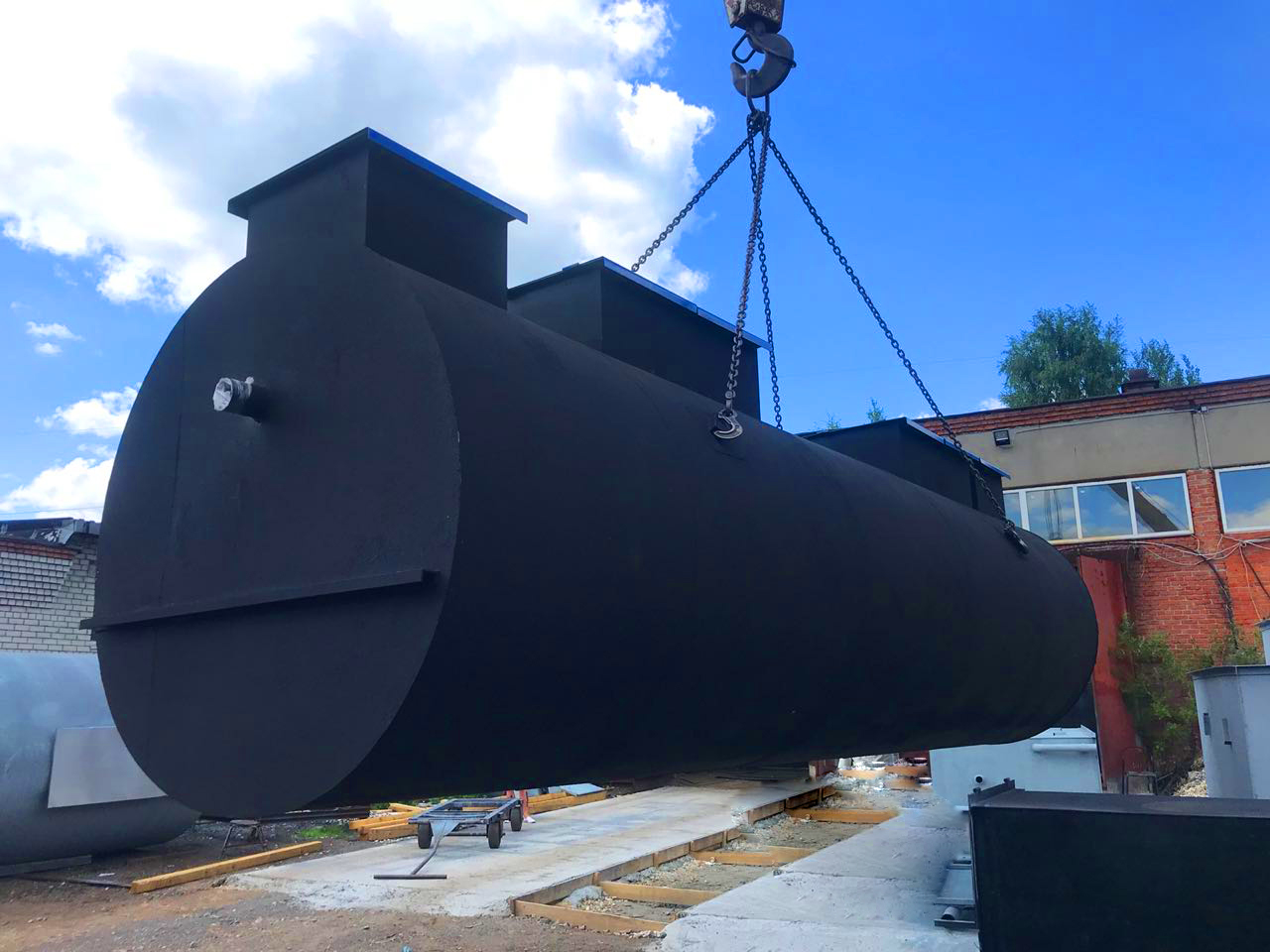 Габариты очистного сооружения: 2 емкости длиной 9800 / диаметром 2400 / весом 11800 кг.